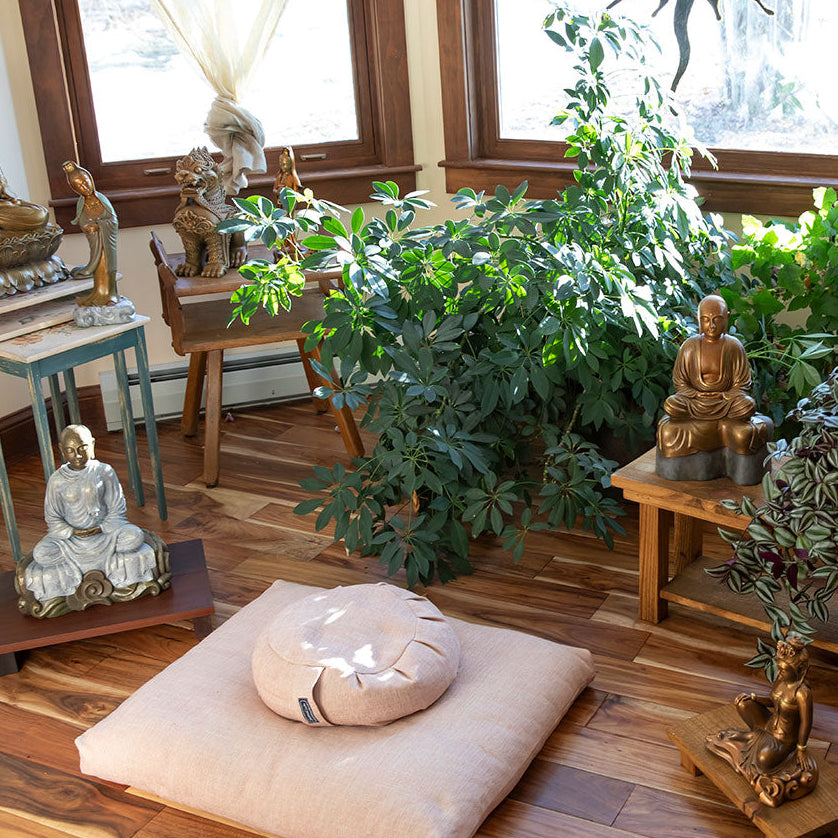 At DharmaCrafts, we fill our meditation cushions with American-grown cotton and source our buckwheat hulls right here in the USA. Our globally sourced fabrics are thoughtfully hand-stitched at our facility in Massachusetts.