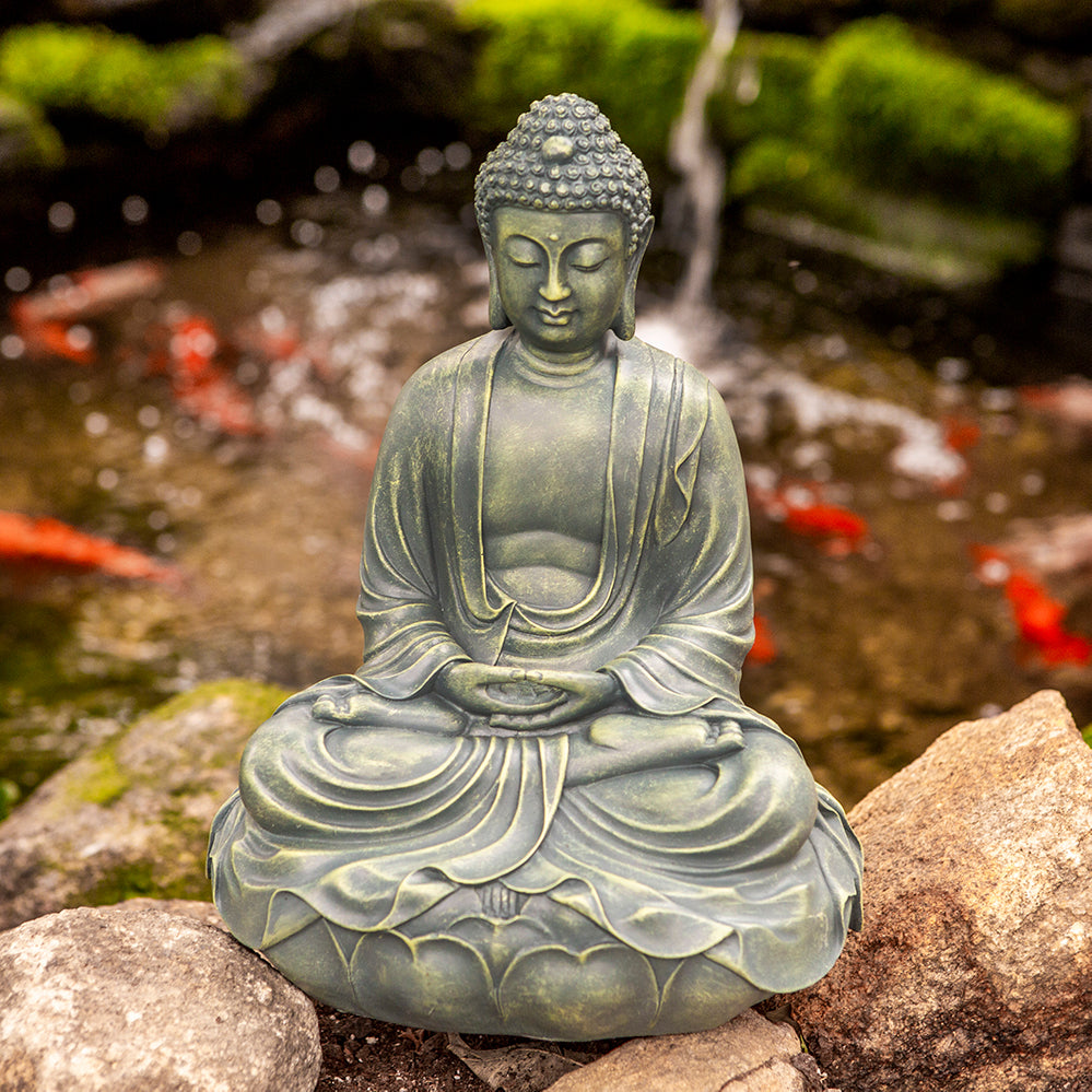 This Buddha statue is absolutely beautiful. The faded shading of the green coloring is lovely and understated. The lines of the statue are every bit as sharp and crisp as they appear in the picture.