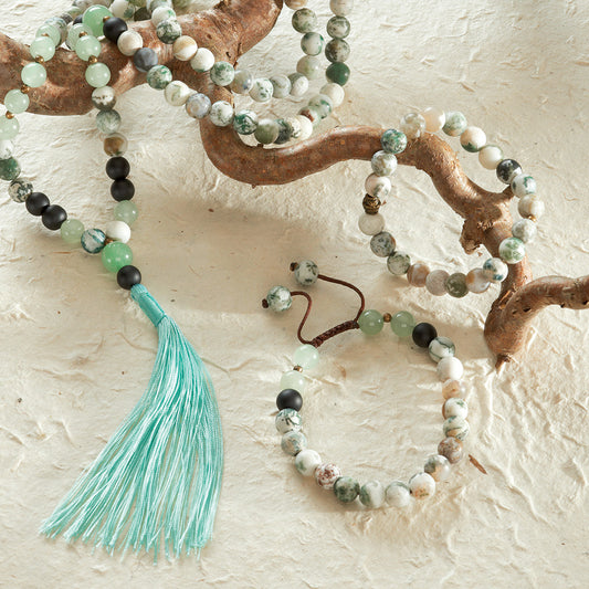 Conch Mantra Bead & Raw Sandalwood Mala Set