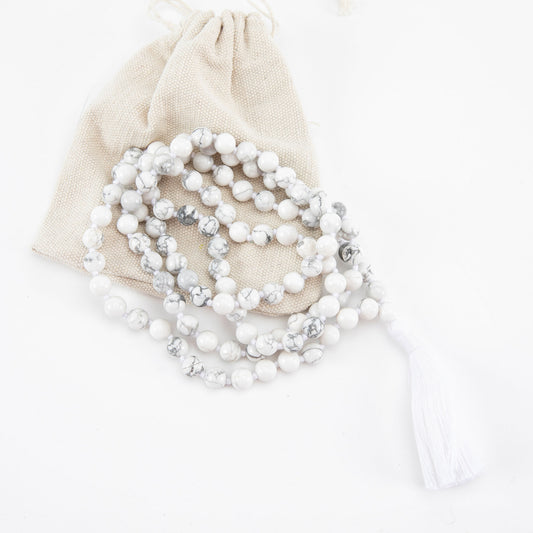 Handmade Prayer Beads: Rhodonite and Howlite Mala