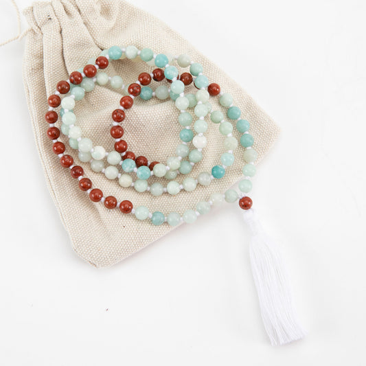 Handmade Prayer Beads: Red Jasper and Amazonite Mala