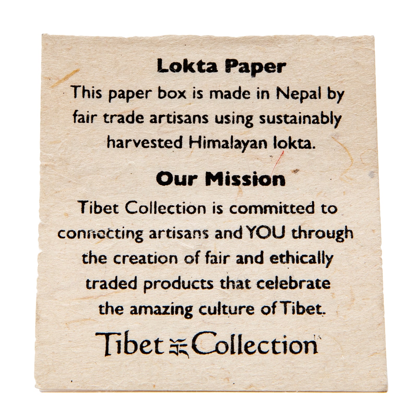 Open this expressive handmade box to discover a potent mindfulness tool nestled inside. The beautiful printed gift box features the symbol for the Three Jewels of Buddhism: the Buddha, Dharma, and Sangha. A tap of the hand-cast brass bowl elicits a strong and focusing sound. Includes bowl, cushion, wooden striker and detailed info card with simple instructions for a short meditation. The artful eco-box is exquisitely handmade in Nepal with sustainably harvested Himalayan paper.