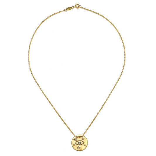 Evil Eye Topaz Celestial Gold Coin Pendant Necklace