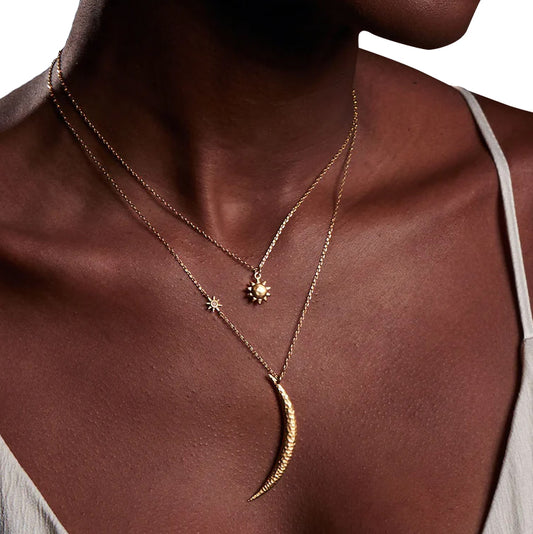 Large Crescent Moon & Star Gold Pendant Necklace