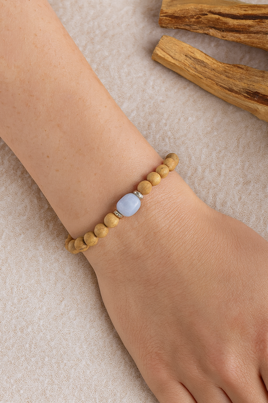 Blue Lace Agate and Palo Santo Bracelet
