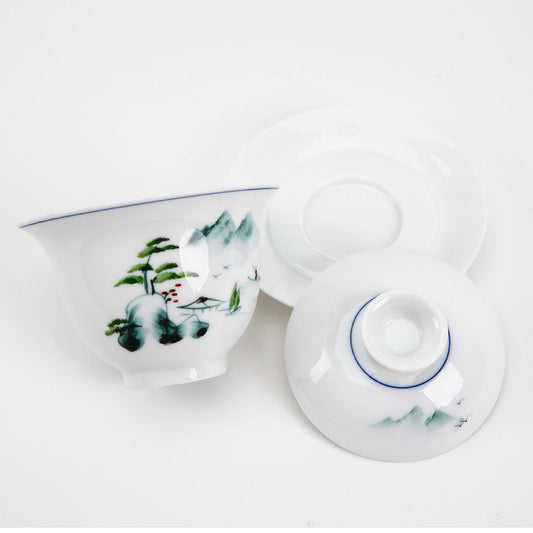 Hand Painted Gaiwan: Sansui Mountain Scene