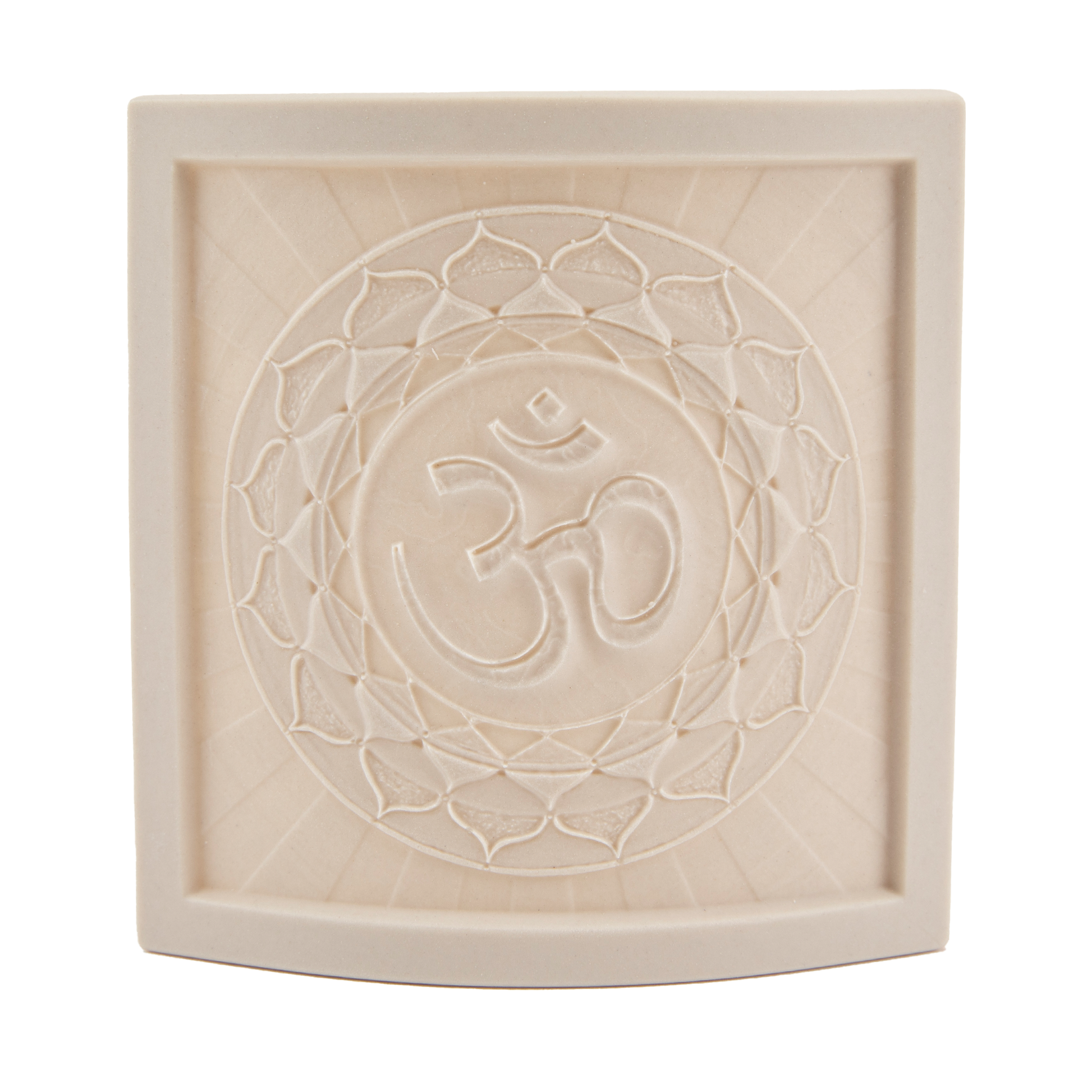 This AUM light is not printed; it is handcrafted using porcelain. This type of porcelain night light is a called a lithophaye, a type of artwork that is made using extremely thin sheets of porcelain molded to varying thicknesses to create a design. Lithophanes are intended to be illuminated from behind to showcase the artwork. This art form dates back to the early 19th century in Europe.