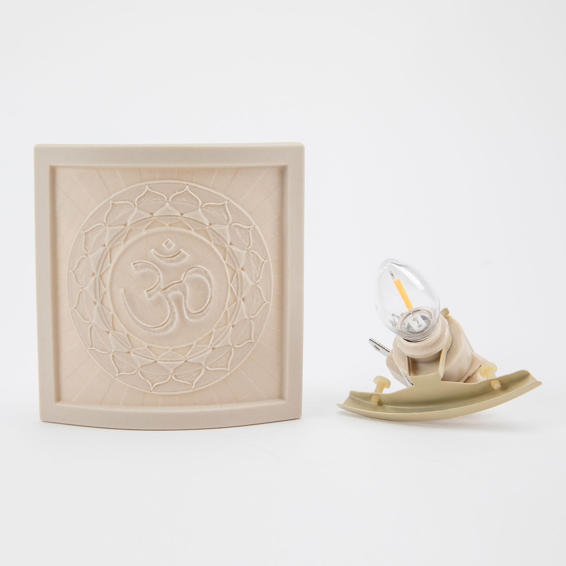 Beautifully handcrafted, this Decorative Night Light depicts the aum symbol in stunning detail. The placement of the bulb creates the effect that there is an aura of light emanating from the center of the symbol. Aum symbolizes the universe and ultimate reality.