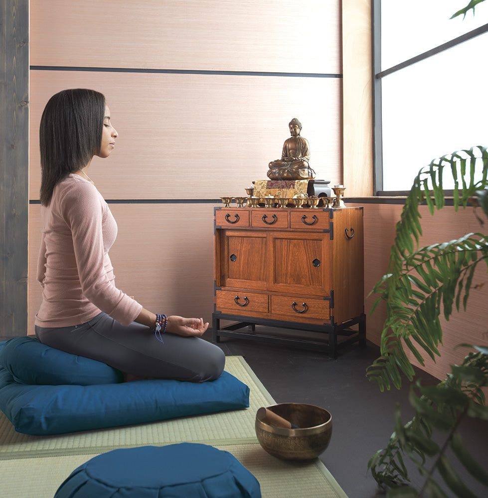 This position is considered to be an advanced meditation pose and can be rather difficult for beginners and those with limited flexibility in their legs, hips, or ankles. It may take some time to train the body to achieve this position. Use a Zabuton cushion as your seat for cushioning and add support cushions as needed for maximum comfort.