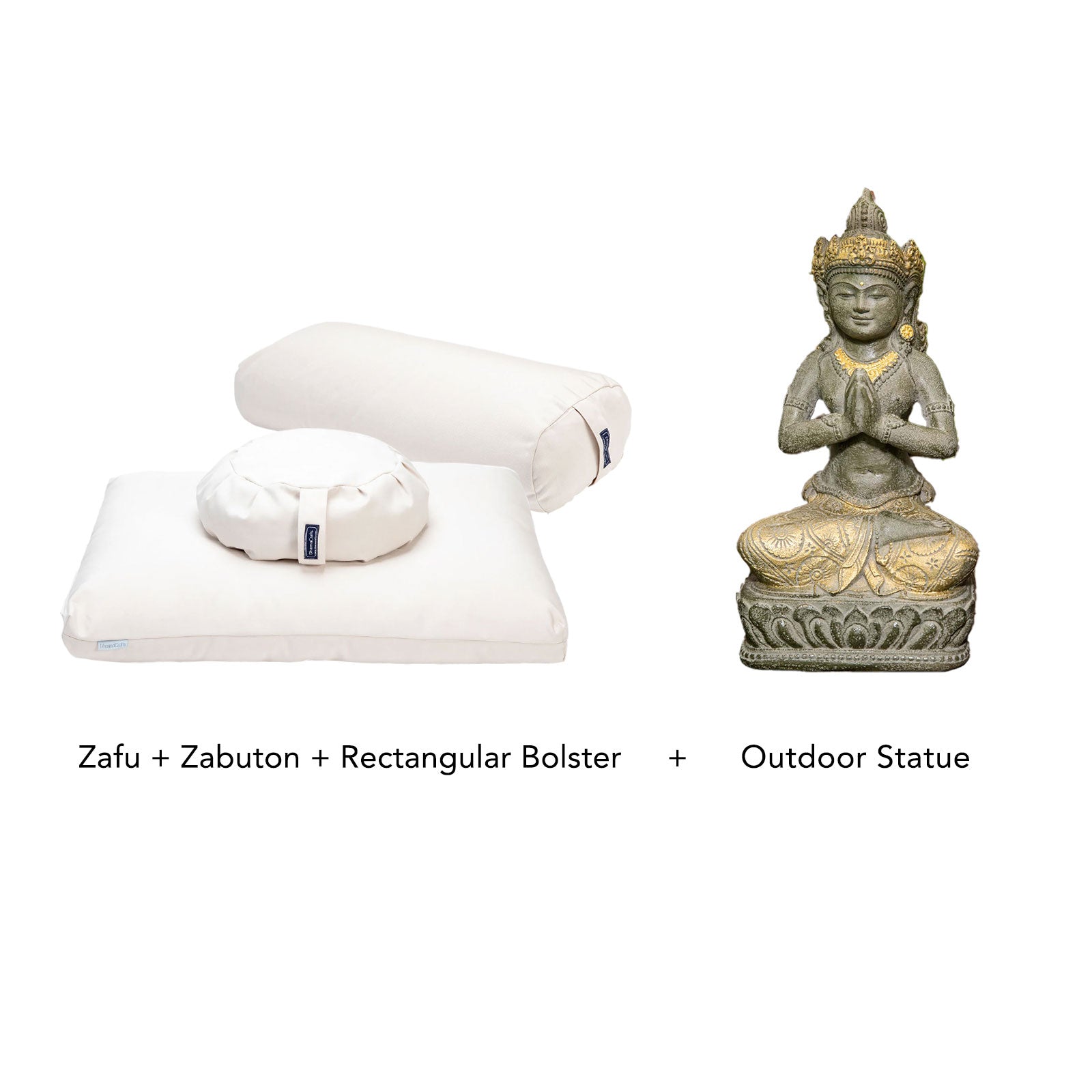 Save 15% when you bundle 4 items: zafu, zabuton, bolster, and one outdoor statue.