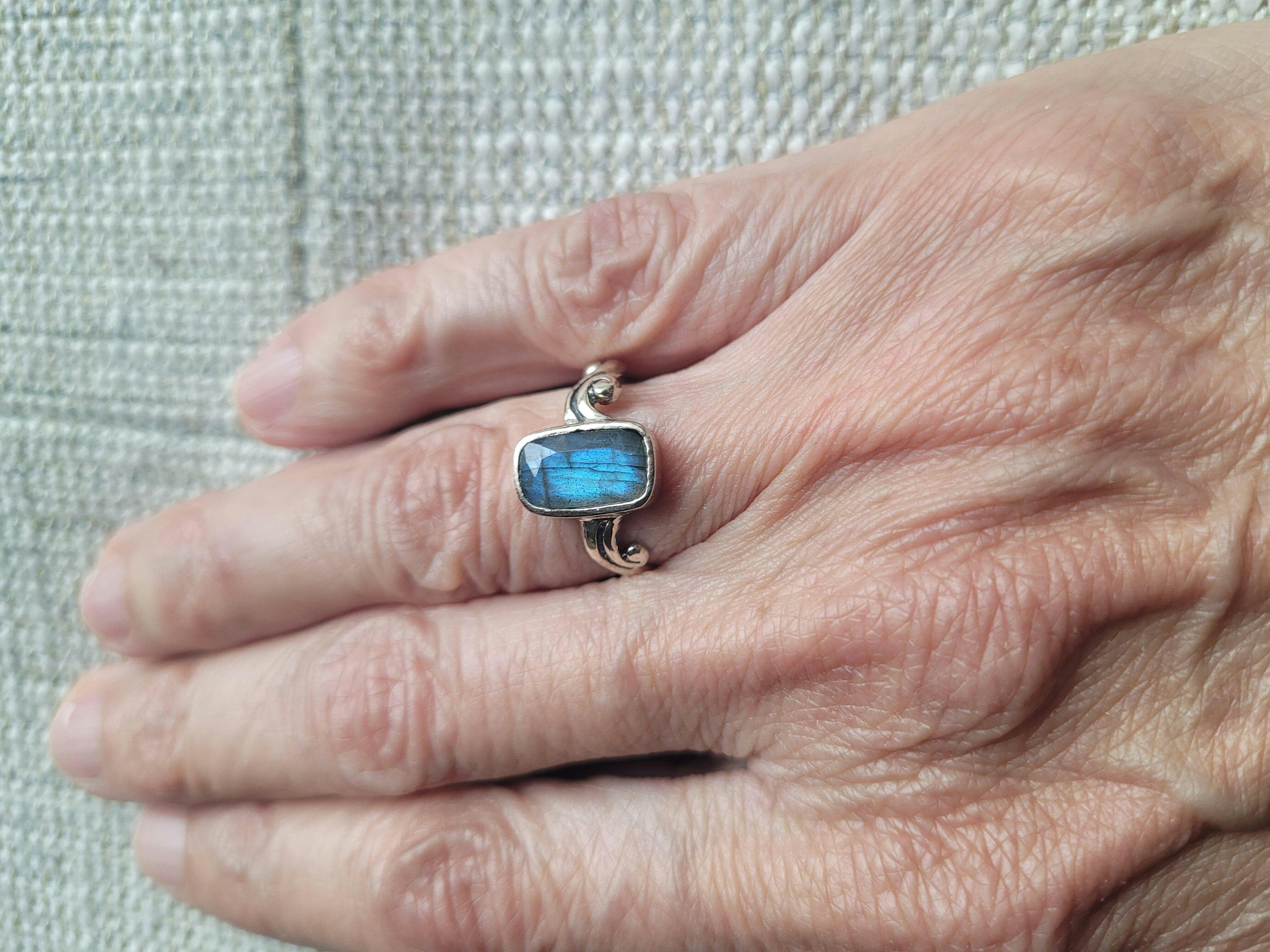 Carry the spiritual energies of labradorite while wearing a stunning piece of jewelry with our Rectangular Labradorite and Filigree Ring in Silver.