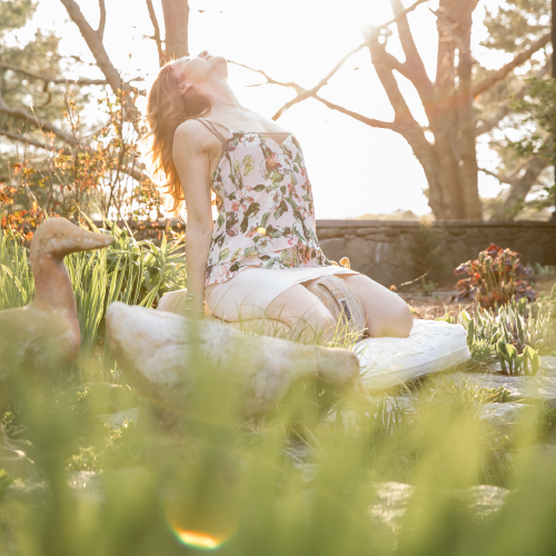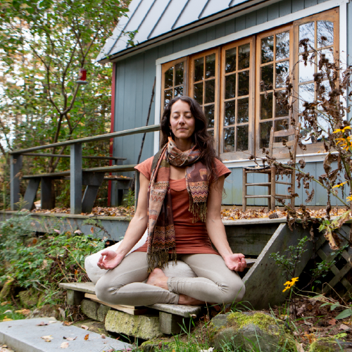 Embrace nature's beauty - greenery, water, and fresh air - for a serene meditation experience outdoors.
