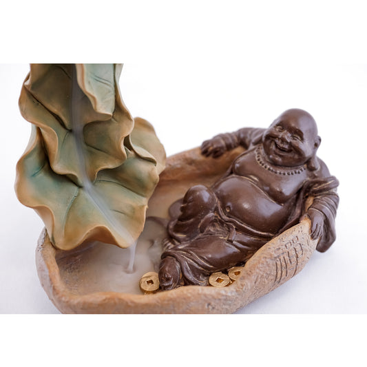 Backflow Incense Burner: Laughing Buddha and Lotus Flower